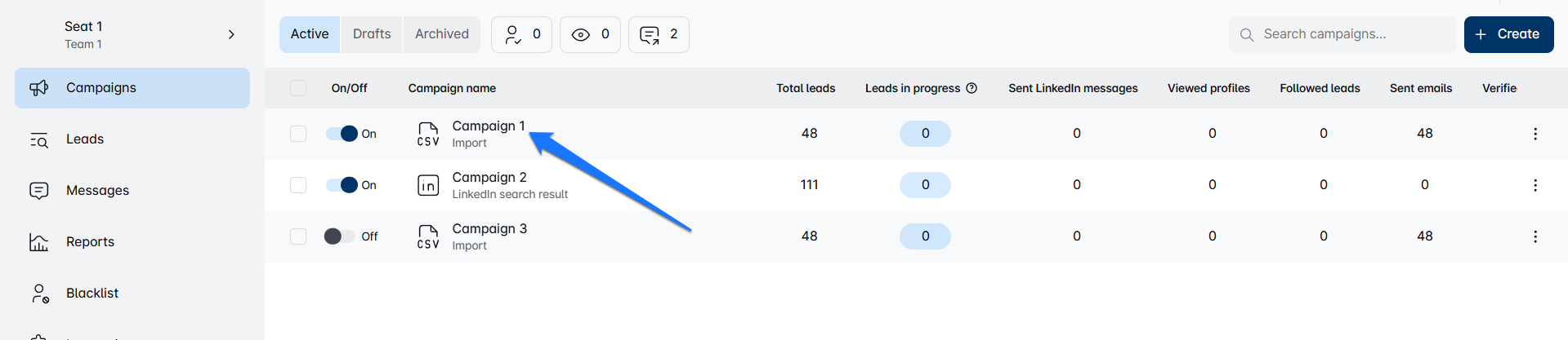 - Start by clicking on your campaign name.
