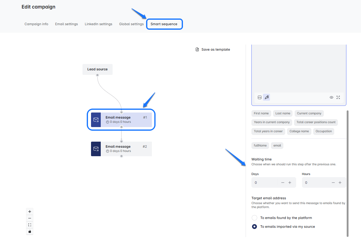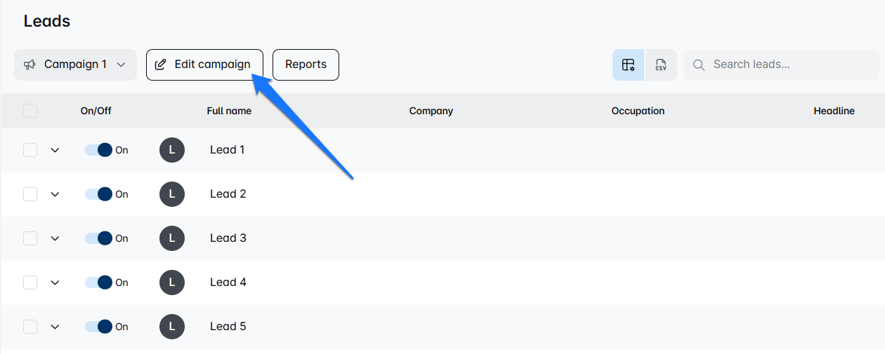 - Next, click on the Edit campaign button. Once your campaign opens up, select the specific step where you’d like to adjust the time delay.