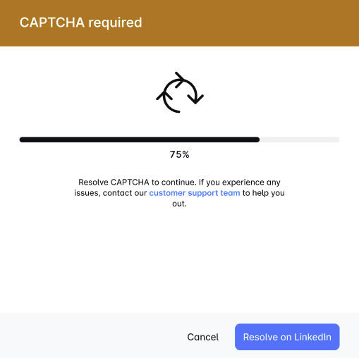 Encountering a CAPTCHA while setting up LinkedIn? 🧩 Simply click "Try by yourself," solve the puzzle, and enter the PIN to complete setup. We’re dedicated to making your Massive Dynamics experience seamless. Enjoy! 🚀