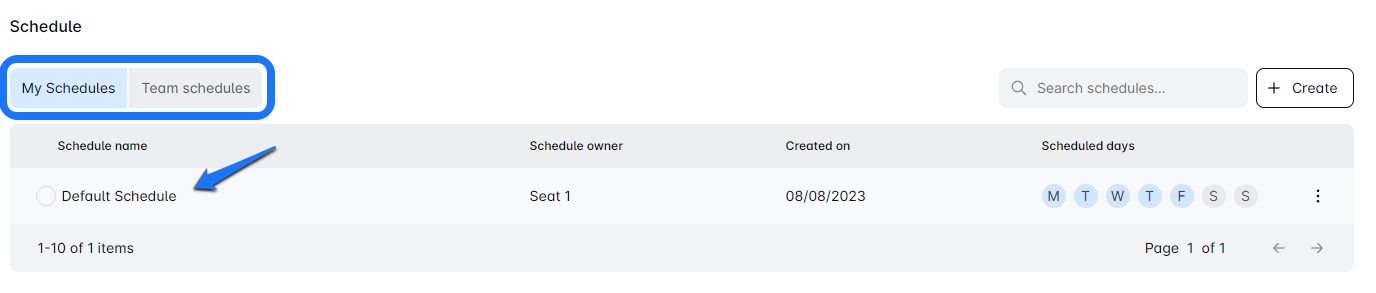 You can also create a new schedule by clicking Create Schedule.
