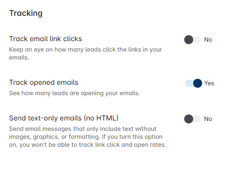 - Track email link clicks: Monitor how many leads clicked the links in your emails.