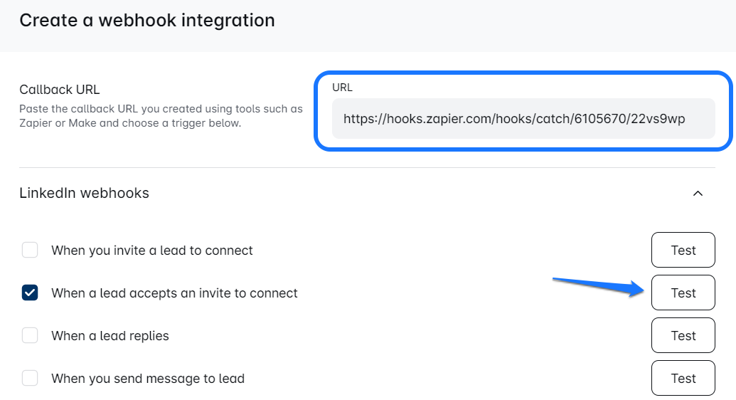 - Select the trigger event in the Massive Dynamics, like “when a lead accepts an invite to connect.”