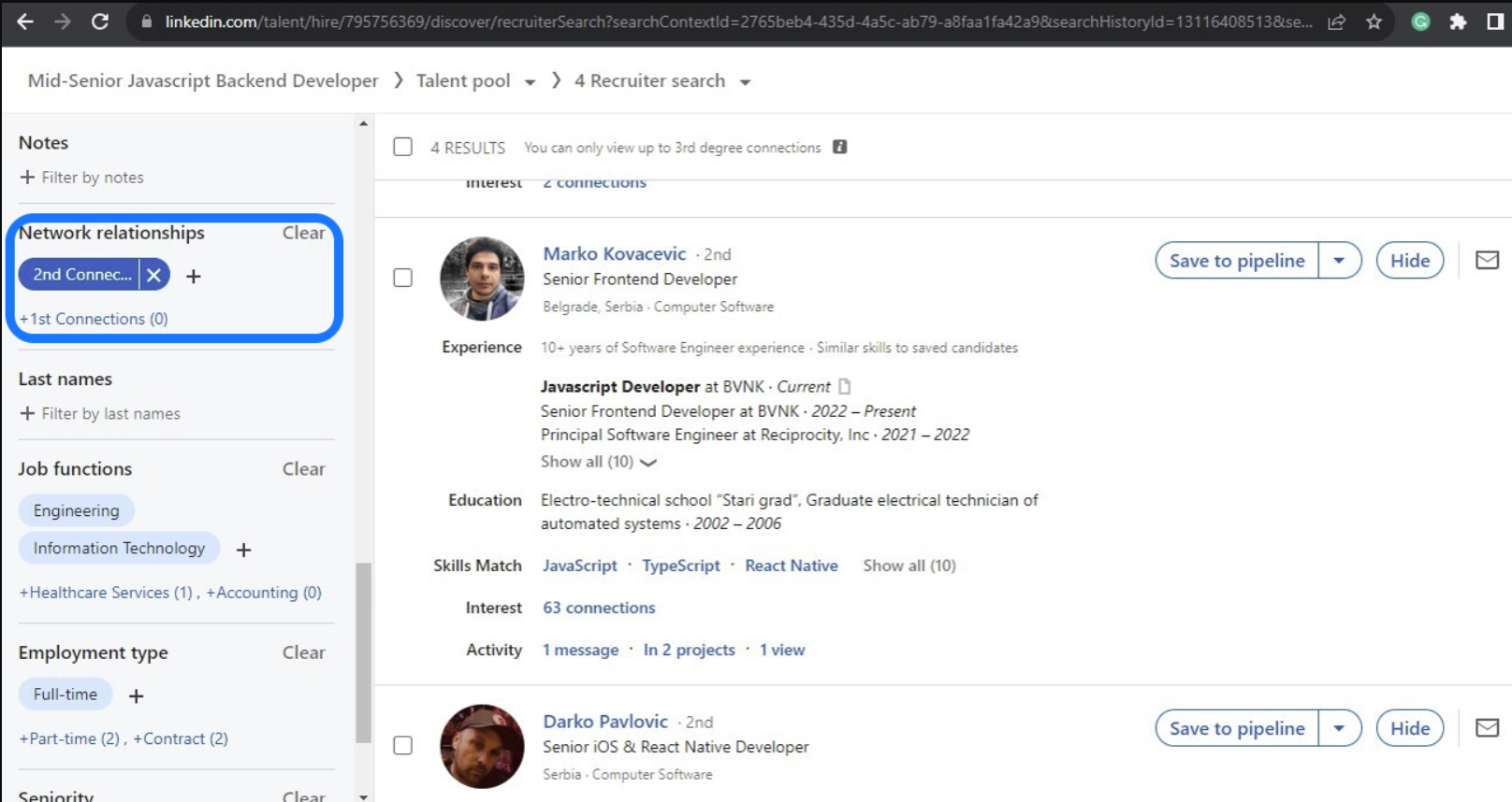 - This part is super important! Make sure the Network Degree connection type matches in both Massive Dynamics and LinkedIn Recruiter. Use the Network Relationships filter on LinkedIn Recruiter to confirm this—it's key to targeting the right audience. 🔍