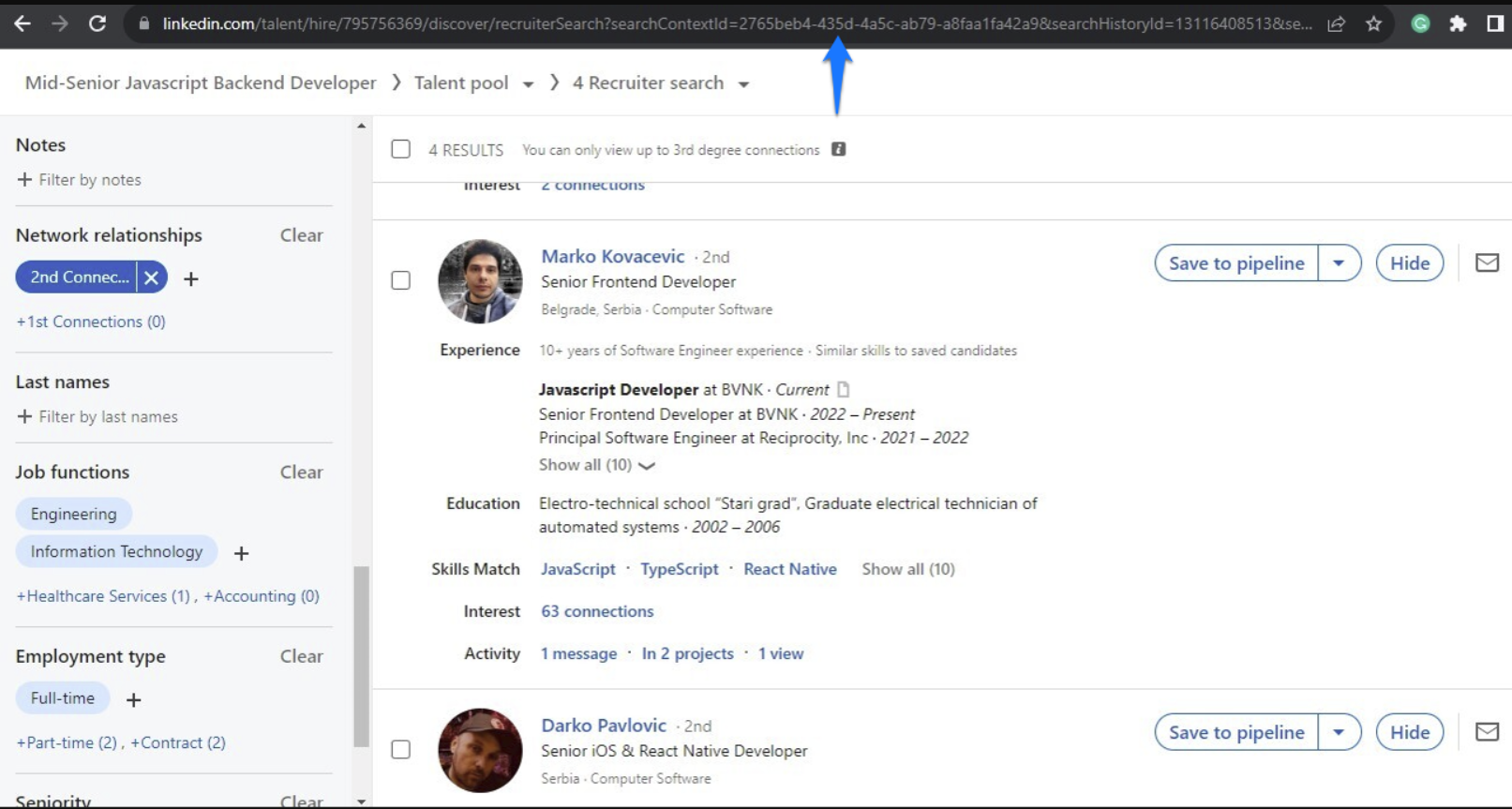 - First things first—head over to LinkedIn! Perform a search in LinkedIn Recruiter or Recruiter Lite. Once you’ve got your search results, copy that URL link. This will be the foundation of your Massive Dynamics campaign. 🌐
