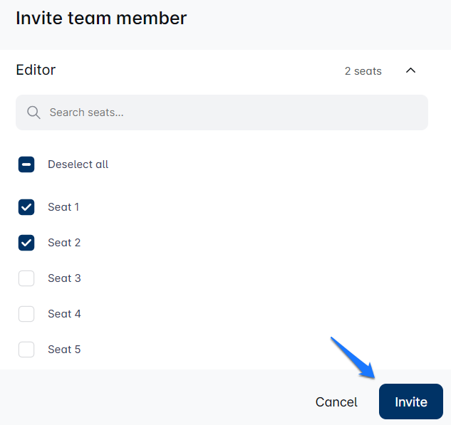 In the new window, you’ll choose the role and assign seats for your new member. It’s like casting a new actor in your play, making sure everyone has the perfect part in your team’s success! 🎭